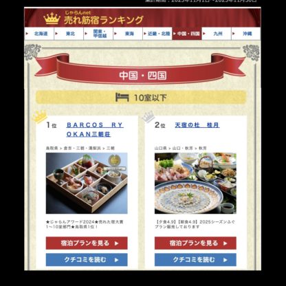 じゃらんアワード2024売れた宿大賞受賞!(鳥取県1〜10室宿1位)